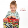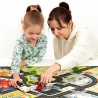 Ogromne podłogowe puzzle tworzą plan miasteczka z mnóstwem dróg, po których można jeździć zabawkowymi samochodzikami.