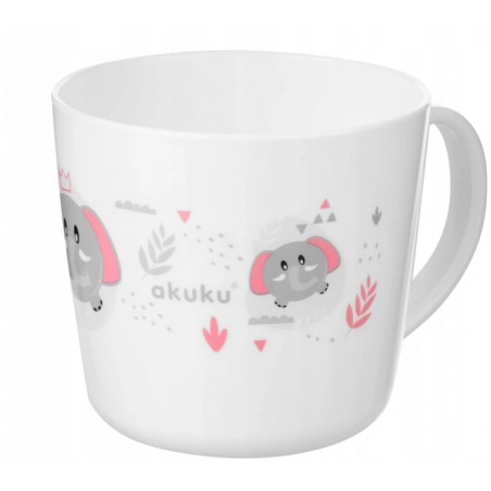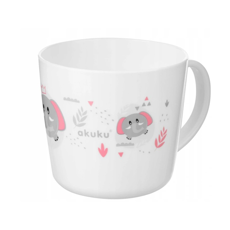 Klasyczny kubeczek plastikowy do picia dla nieco starszego malucha. Ozdobiony kolorowymi wzorkami z wizerunkiem SŁONIKA z pewnością zainteresuje i zachęci do samodzielnego picia.