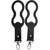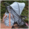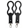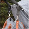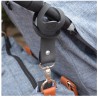 Praktyczne uchwyty do mocowania torby dla mam do wózka. Końcówkę z karabińczykiem łatwo przeciągniesz przez oczko wokół rękojeści wózka.