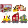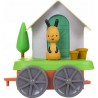 Na jednym z wagoników twoje dziecko może umieścić domek króliczka, który otwiera się i zawiera wiele interesujących elementów. Na drugim natomiast domek z drzewem i dekoracyjnymi doniczkami. Lokomotywa po naciśnięciu przycisku zachwyci maluchy efektami świetlnymi oraz dźwiękowymi.