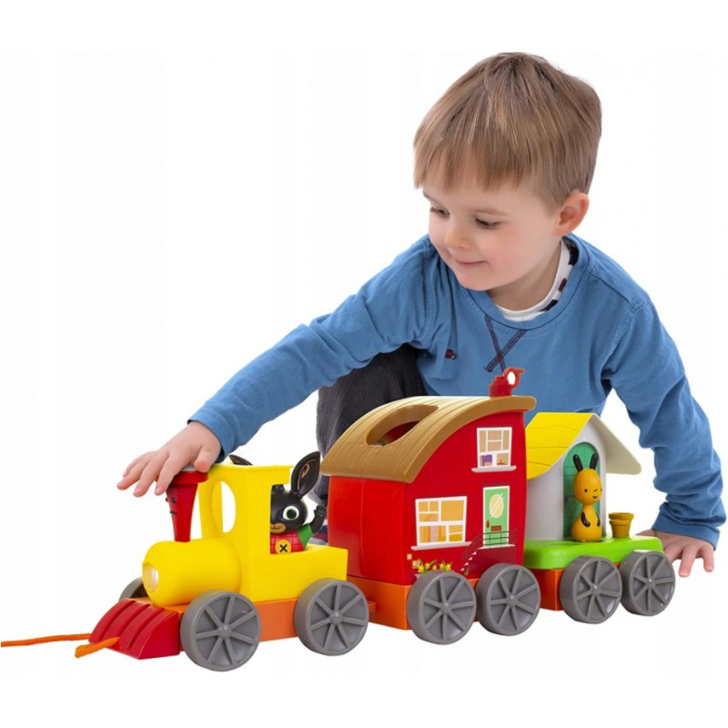 Teraz twoja pociecha wspólnie z ulubionym bohaterem może przenieść się do świata pełnego wspaniałej zabawy. Z króliczkiem Bingiem i grupą jego przyjaciół nigdy nie będzie się nudzić! Zabawkowy pociąg rozbudowany o dodatkowe elementy urozmaicające rozrywkę wywoła na twarzy twojego dziecka ogromną radość!