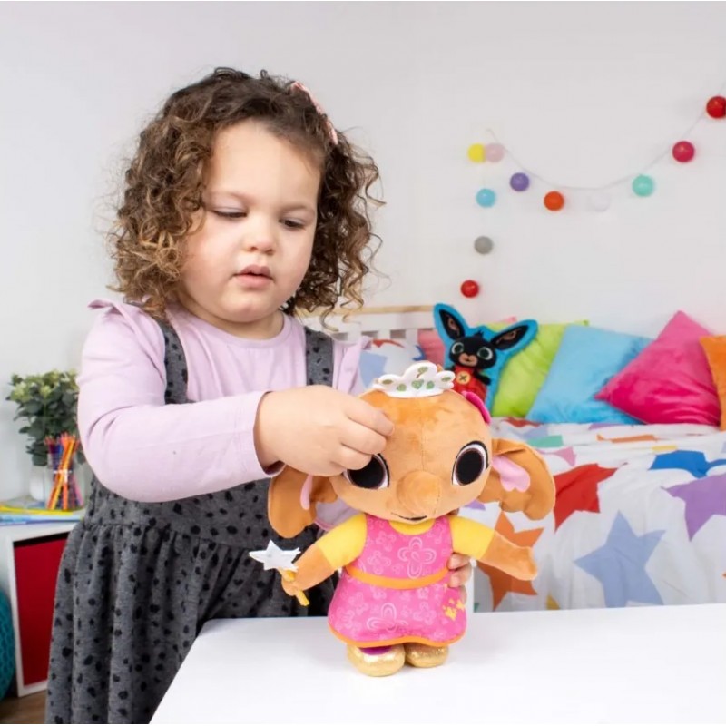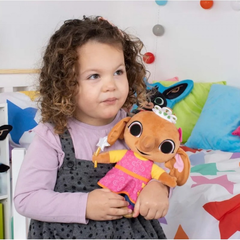 Sula ma 23 cm wysokości i jest wykonana z przyjemnego w dotyku materiału. Może posłużyć jako przytulanka, lub przyjaciel który utuli dziecko do snu. Jest to idealny pomysł na prezent dla każdego małego fana bajki o króliku Bingu. Sula uwielbia świat wróżek, ma różdżkę, koronę i świecące skrzydełka - dokładnie tak jak w serialu.