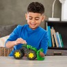 Ciągnik Monster Treads Rev Up wyposażony jest w charakterystyczne, super sprężyste opony, unikalne wzory bieżnika i dźwięki przyspieszania, które są aktywowane przez naciśnięcie dachu traktora (nie są wymagane baterie). Inne funkcje obejmują swobodne koła i ładowarkę z chwytakiem przednim z ruchomymi częściami. Pokonaj terenowy teren z Monster Treads i John Deere!
