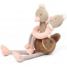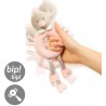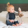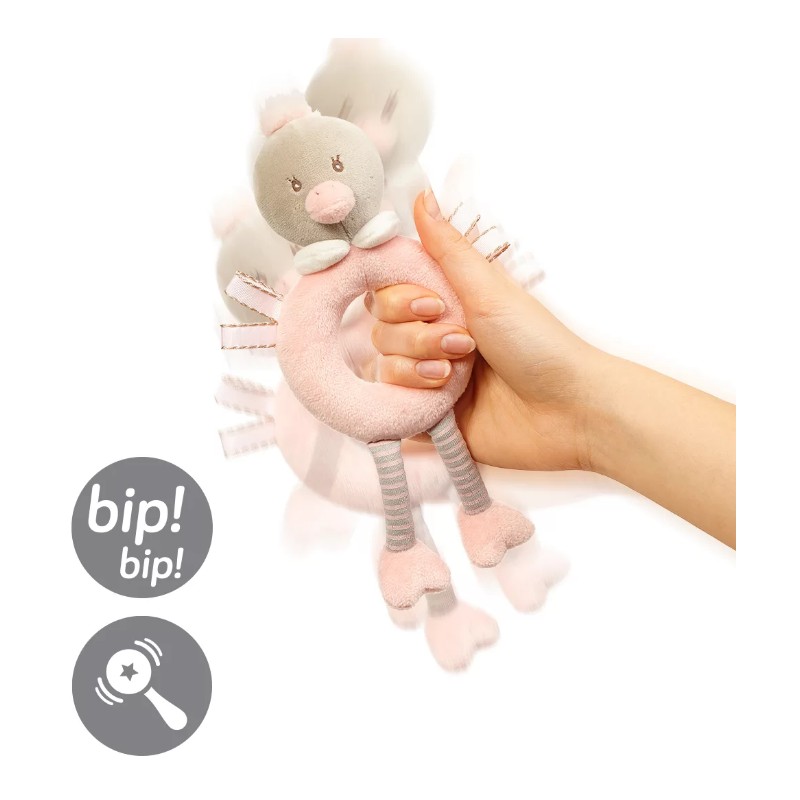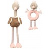 Zabawka daje dziecku poczucie bezpieczeństwa i wspomaga rozwój emocjonalny poprzez responsywność funkcjonalności w interakcji. Niezwykła zabawka w zależności od potrzeby dziecka skutecznie zachęci do zabawy, pobudzając zmysły, jak również uspokoi i wyciszy. Zabawka składa się z dwóch integralnych części:– przytulanki – piszczka Lindy i grzechotki Stelli. Dzięki takiej konstrukcji dziecko może się uczyć zakładać i ściągać jeden element na drugi.Szeleszczące elementy ukryte w nóżkach zaciekawią dziecko i przykują jego uwagę. Piszczące elementy zaciekawią dziecko i przykują jego uwagę.