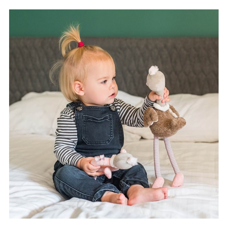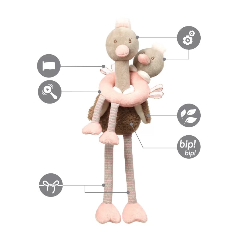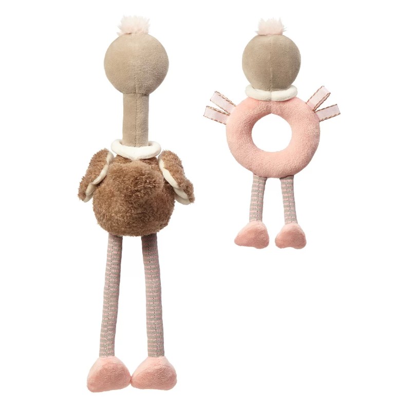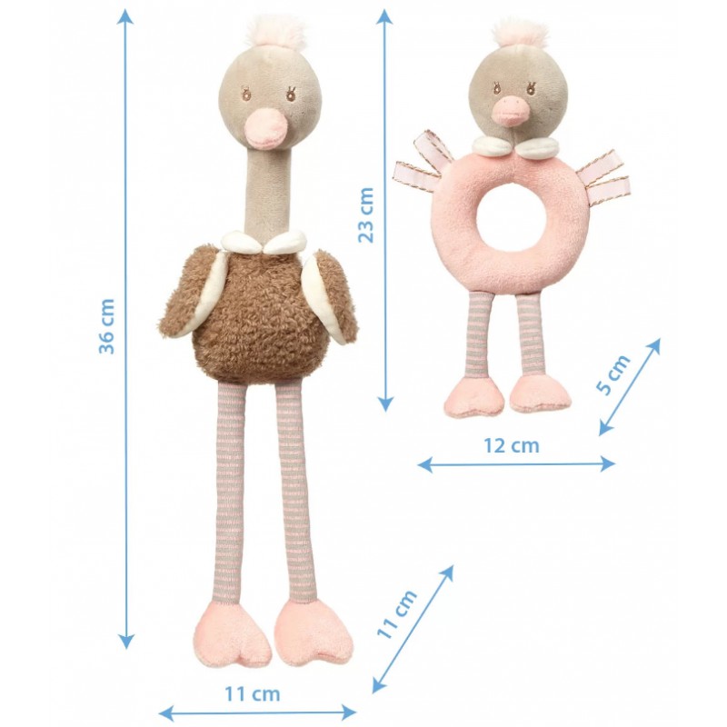 Zabawki edukacyjne OSTRICH McKNOX FAMILY: przytulanki LINDA i STELLA zapoznają dziecko z różnorodnym światem kolorów, dźwięków i kształtów. Dzięki specjalnej konstrukcji zestawu dziecko może się uczyć zakładać i ściągać jeden element na drugi.