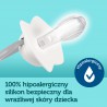 - Wyjątkowo miękka silikonowa gumka wymaga mniej wysiłku podczas ssania, dzięki czemu szybko przynosi ukojenie.