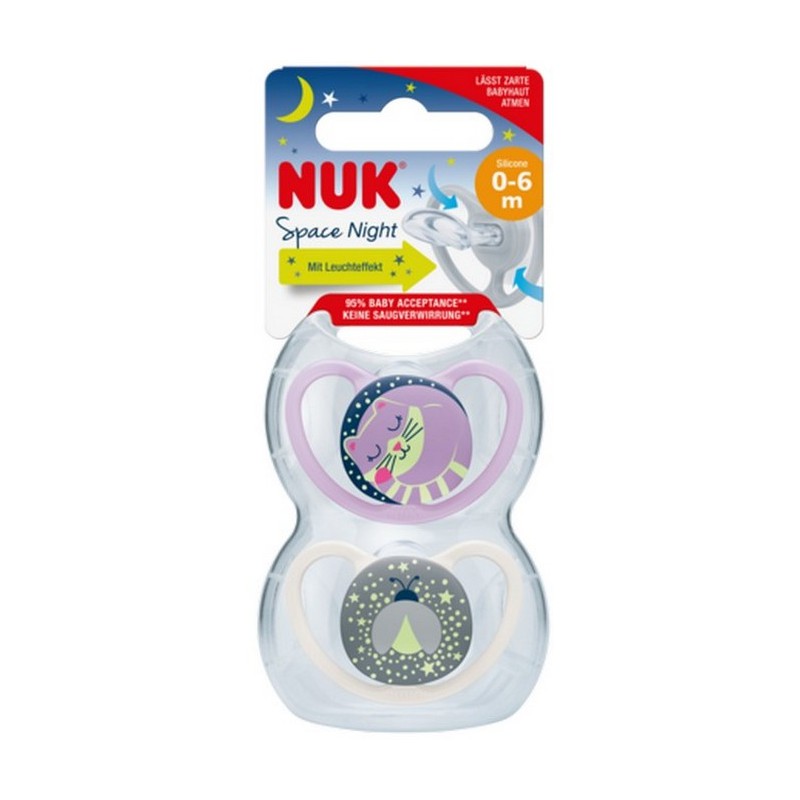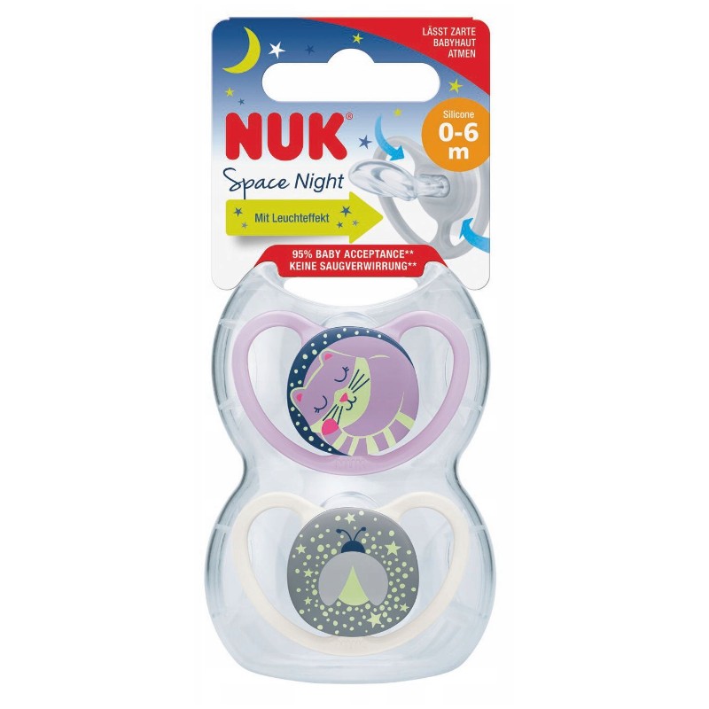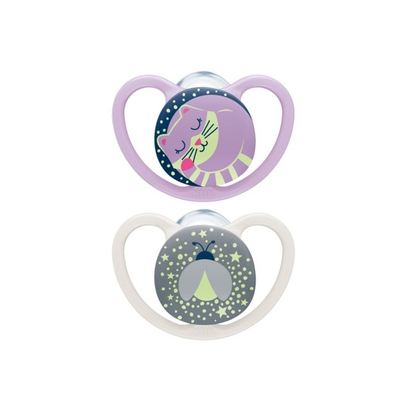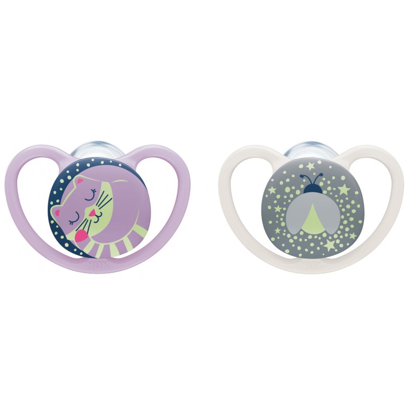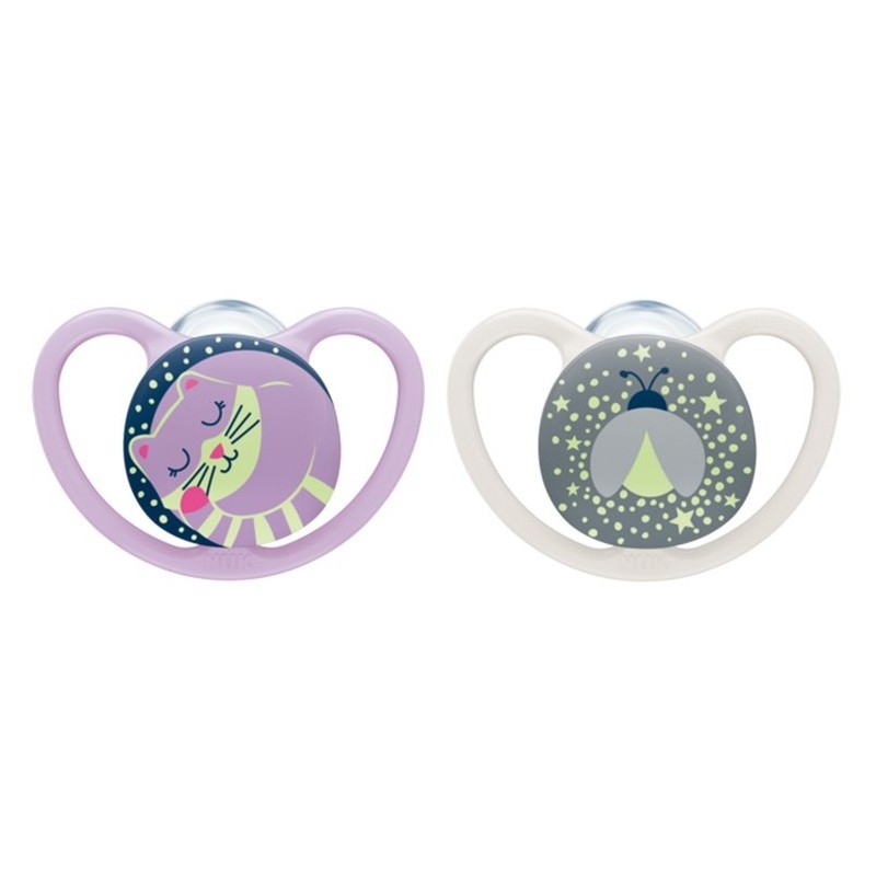 Smoczek Silikonowy Świecący NUK SPACE NIGHT 0-6m girl