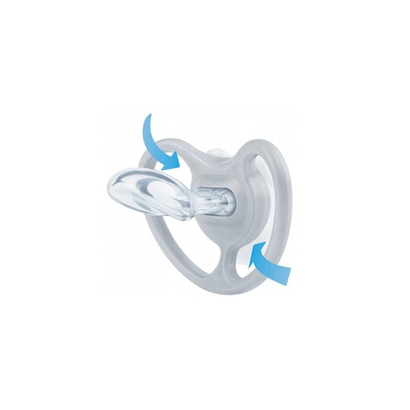 Smoczek NUK Space posiada nową, najlepszą jak dotąd gumkę NUK. Unikalny kształt NUK jest wzorowany na brodawce sutkowej matki podczas karmienia i wspiera zdrowy rozwój jamy ustnej dziecka.