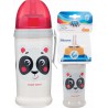Bidon z miękkim, silikonowym ustnikiem, wyposażony w praktyczną przykrywkę chroniącą przed zabrudzeniem. Ustnik jest połączony z rurką, która ułatwia picie napoju z dna bidonu.