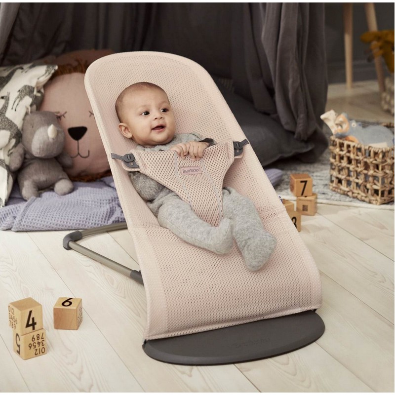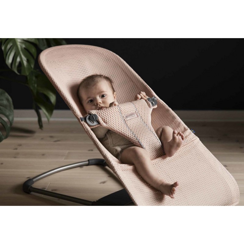 BABYBJORN - leżaczek BLISS MESH w kolorze Perłowy Różowy z ramą w kolorze ciemny szary
