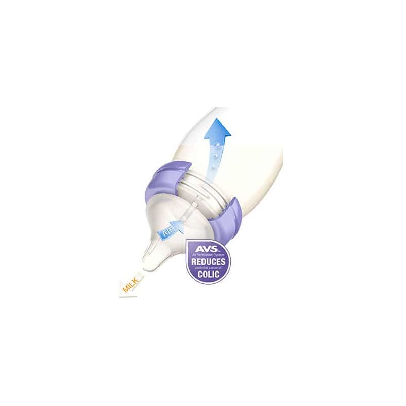 - Air Ventilation System AVS redukuje dostawanie się powietrza, potencjalną przyczynę kolek u dzieci