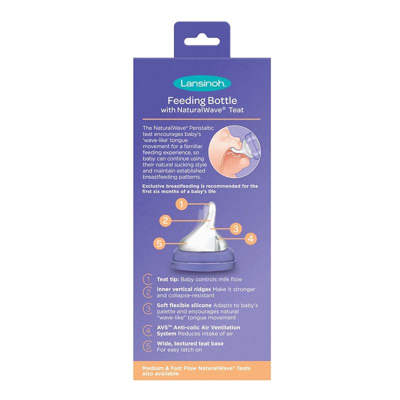 Butelka do karmienia niemowląt LANSINOH wykonana z bezpiecznego tworzywa, łatwa w użytkowaniu i myciu, wygodna i lekko wyprofilowana, dla lepszego uchwytu. Wyposażona w miękki, elastyczny smoczek Natural Wave zaprojektowany tak, aby dziecko mogło ssać z nich w ten sam sposób, w jaki ssie pierś mamy.