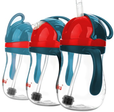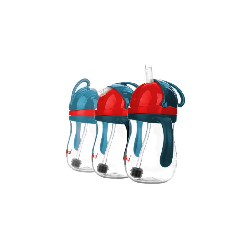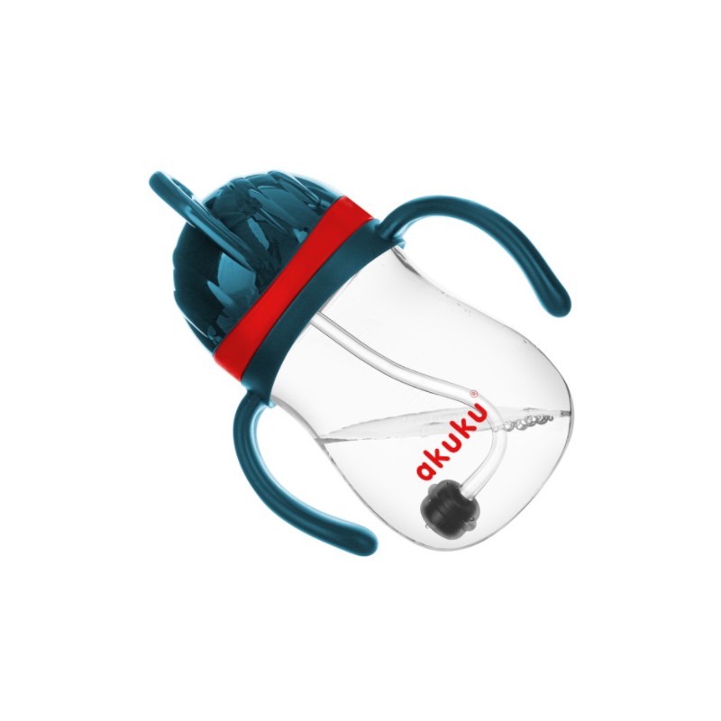 Bidon ze słomką i odważnikiem AKUKU z którego dziecko może pić przechylając go do góry dnem, tak jak z butelki. Niezastąpiony kubek ze słomką do picia w domu, w podróży i na spacerze