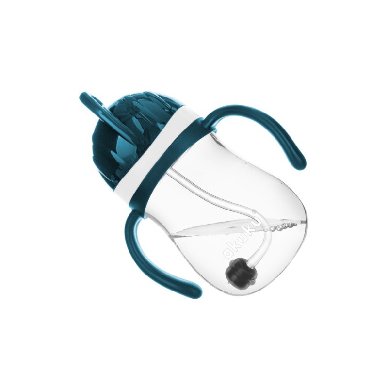 Bidon ze słomką i odważnikiem AKUKU z którego dziecko może pić przechylając go do góry dnem, tak jak z butelki. Niezastąpiony kubek ze słomką do picia w domu, w podróży i na spacerze