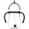Bidon z silikonową słomką zakończoną odważnikiem umożliwia picie pod każdym kątem. Całkowicie wolny od bisfenolu A (0% BPA). Dziecko pije do ostatniej kropelki. Twój maluszek może pić przechylając kubek nawet do góry nogami. Niezastąpiony w domu i w podróży. Szczelne zamknięcie zapobiega wylewaniu się picia i chroni słomkę przed zabrudzeniem. Transparentność i wyraźna podziałka pozwala na kontrolowanie ilość płynu. Kubek można myć w zmywarce na górnej półce (ale bez słomki).