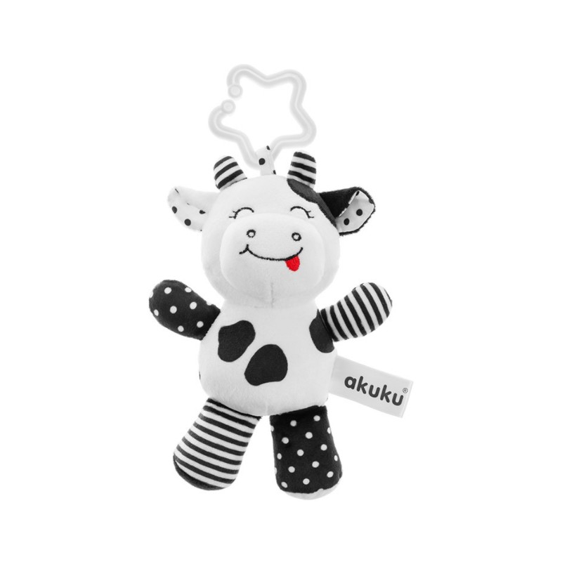 Pluszowa zawieszka Krówka bez wątpienia przykuje uwagę Twojego dziecka. Maskotka wyposażona jest w uniwersalny, łatwy do zaczepienia na wszelkich powierzchniach plastikowy uchwyt-haczyk, dzięki czemu można ją zamocować w dowolnym miejscu w domu oraz w podróży. Czarno-białe kolory stymulują zmysł wzroku u niemowlaka, który jeszcze nie rozróżnia barw. Produkt wykonany z delikatnego materiału, który powoduje, że dziecko nie chce się z nimi rozstać. Jest również grzechotką. Rozwija koordynacje wzrokowo-słuchową i motoryczną malucha.