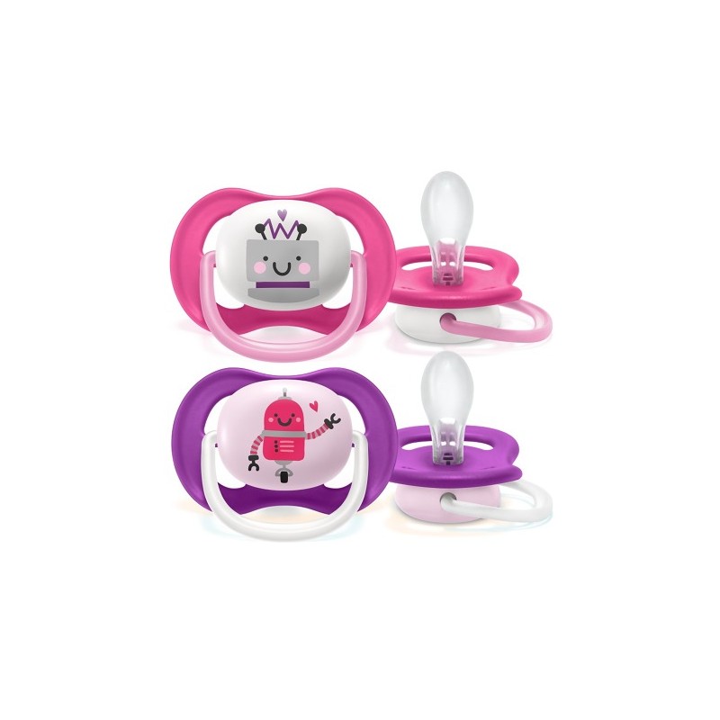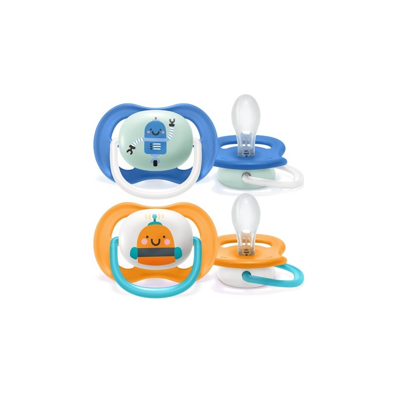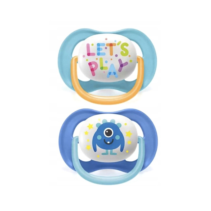 Avent smoczek uspokajający Ultra Air HAPPY to bardzo lekki, przepuszczający powietrze smoczek dedykowany dzieciom o wrażliwej skórze. Wykonany z silikonu, bezpieczny dla każdego maluszka, wspiera odruch ssania, rozwoju mowy i zgryzu.