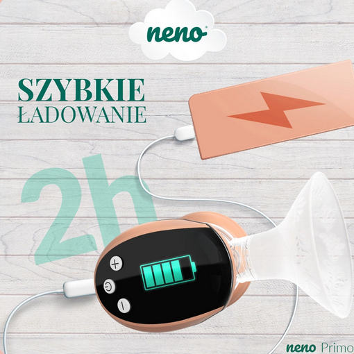 Neno Primo pozwala aż na cztery pełne, 30-minutowe sesje odciągania po jednym naładowaniu. Produkt jest w pełni bezprzewodowy, a zatem możesz odciągać pokarm wszędzie tam, gdzie dostęp do źródła prądu jest ograniczony.