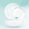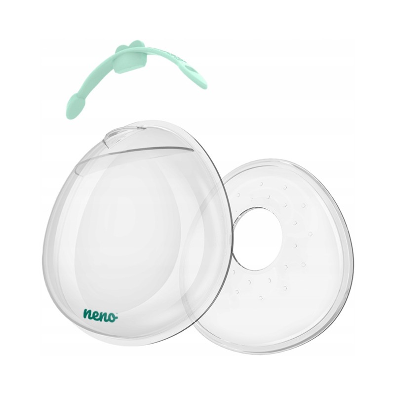 Neno Claro to zestaw dwóch wygodnych kolektorów na mleko, które są w stanie zmagazynować do 40 ml pokarmu z każdej piersi. Produkt jest niezwykle dyskretny — zmieści się w damskim biustonoszu i jest praktycznie niewyczuwalny w korzystaniu. Każdy kolektor składa się z dwóch elementów: specjalnej osłonki zapobiegającej zabrudzeniom bielizny oraz silikonowej nakładki na brodawkę, która delikatnie otula pierś. Do zestawu dołączono wygodne etui — pudełko, które pozwala na wygodne przechowywanie produktu.