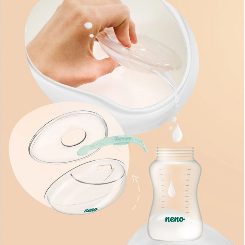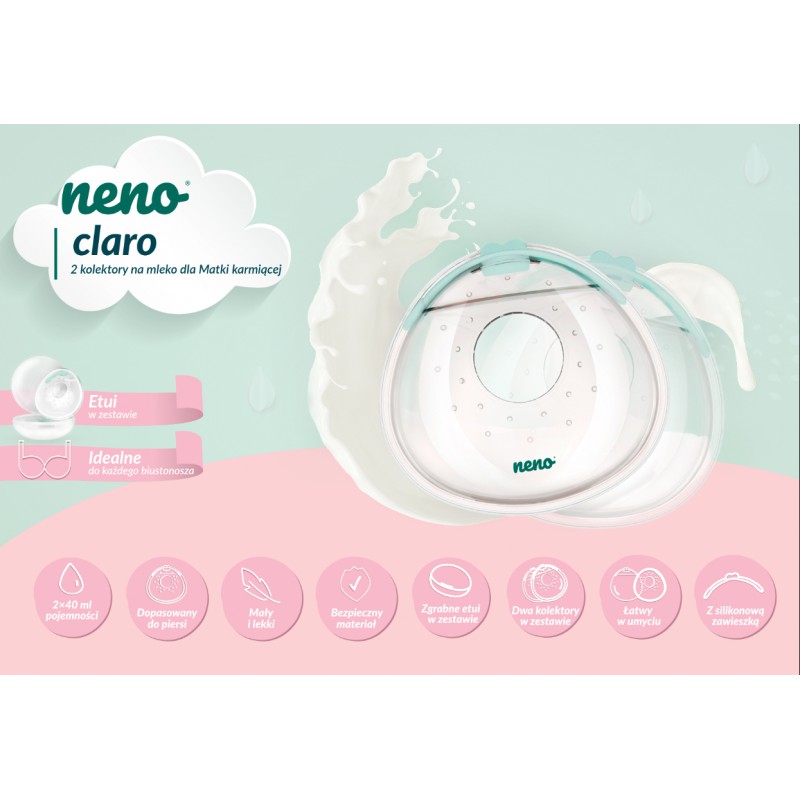 Neno Claro to zestaw dwóch wygodnych kolektorów na mleko, które są w stanie zmagazynować do 40 ml pokarmu z każdej piersi. Produkt jest niezwykle dyskretny — zmieści się w damskim biustonoszu i jest praktycznie niewyczuwalny w korzystaniu.