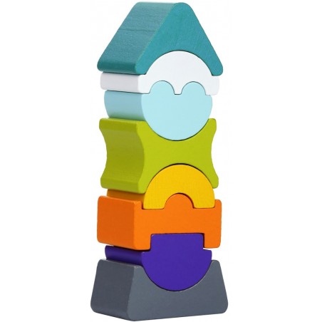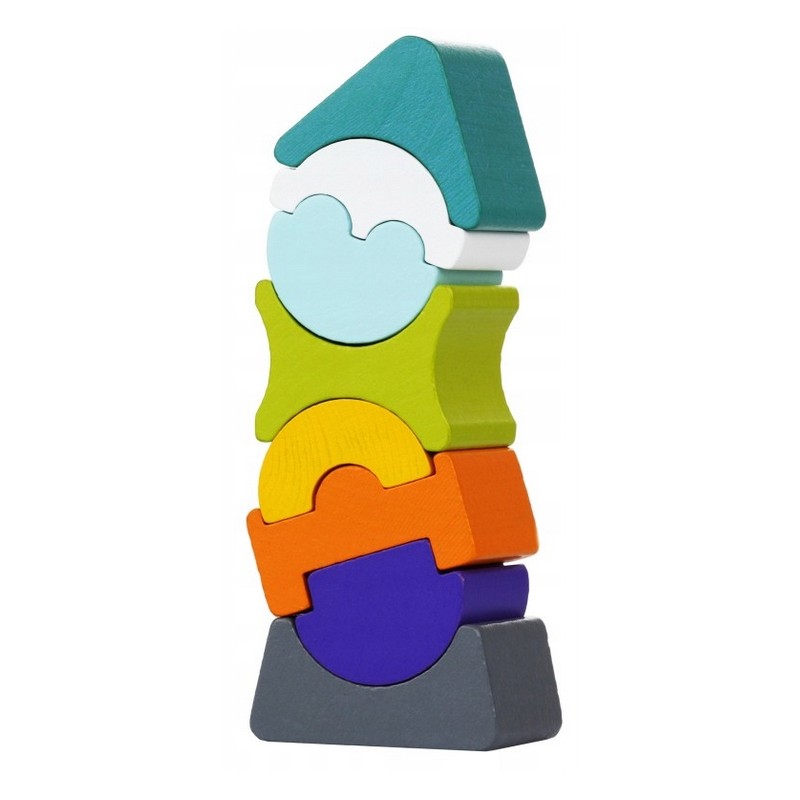 Balansująca wieża to zestaw składający się z 8 drewnianych, kolorowych elementów. Elementy muszą być ułożone w taki sposób, aby wieża się nie przewróciła. Klocki można również ułożyć na wiele innych sposobów.
