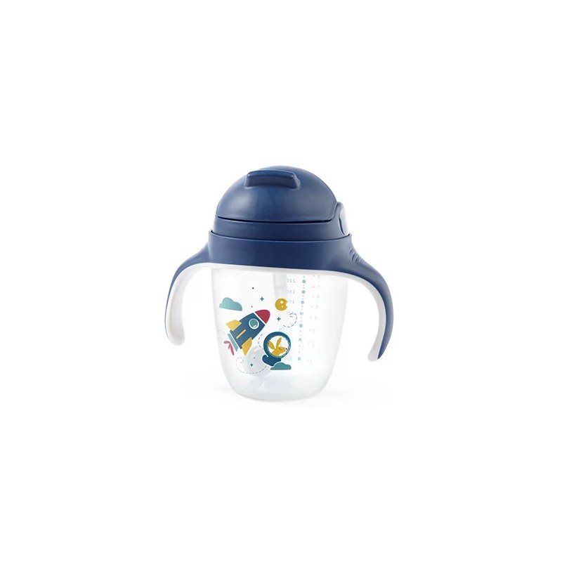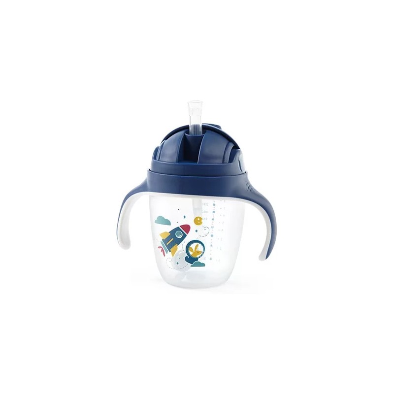 Niezastąpiony kubek z silikonowym ustnikiem i obciążoną słomką pozwoli Twojemu maluszkowi pić ulubiony napój w dowolnej pozycji i cieszyć się nim do ostatniej kropli.