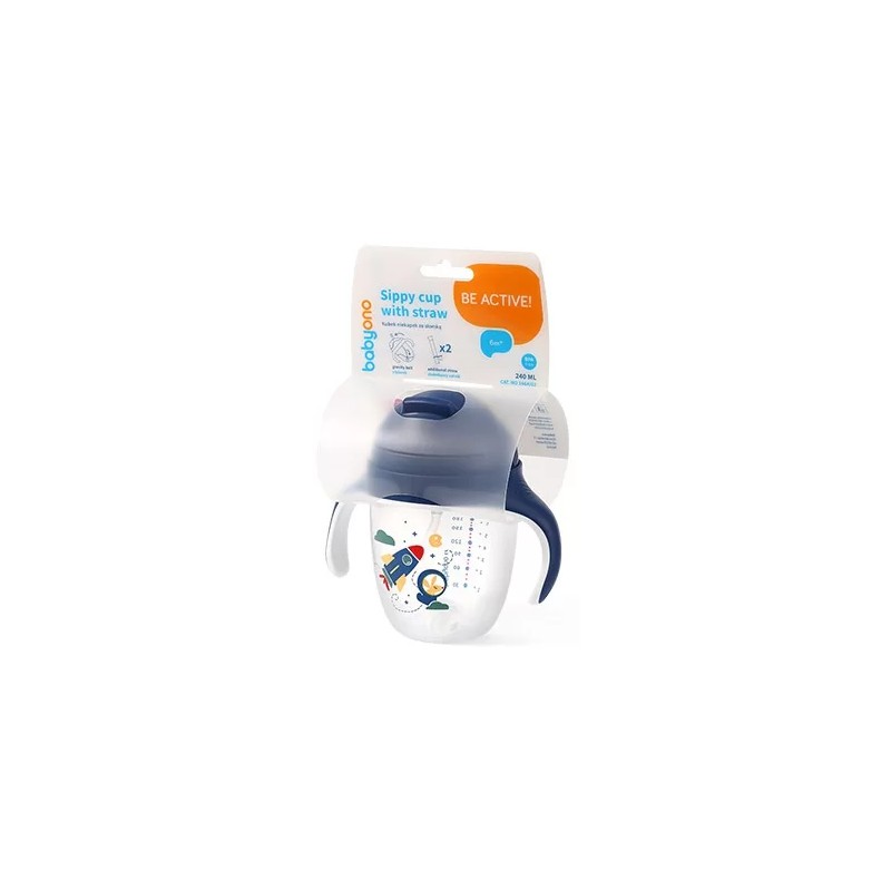 BabyOno Kubek niekapek z obciążoną słomką granatowy