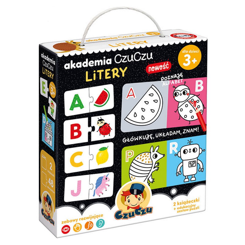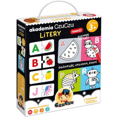 Akademia CzuCzu Litery wita! Tematyczne puzzle i kolorowanki pozwalają bawić się na różne kreatywne sposoby, które inspirują dzieci do poznawania alfabetu.