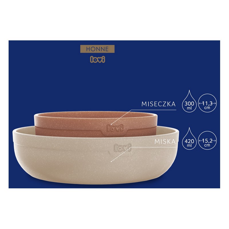 Produkty LOVI są lekkie, poręczne, łatwe do trzymania oraz posiadają bezpieczne, obłe kształty dzięki czemu mogą być używane zarówno przez rodziców, jak i dzieci. Do produkcji miseczek zastosowaliśmy 20% mączki drzewnej pochodzącej z recyklingu, dzięki czemu w ich składzie znajduje się mniej plastiku, a co najważniejsze miseczki te są wolne od melaminy oraz BPA.