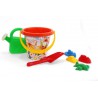 W skład akcesoriów wchodzi: konewka, łopatka i foremki. Konewka posiada zdejmowane sitko. Dzięki temu możemy wylewać wodę na dwa sposoby. Wygodna rączka sprawia, że z łatwością przeniesiemy konewkę na dalsze odległości. Łopatka ma mały otwór na rękojeści. Dodatkowe foremki posiadają kształt pojazdów (samolot, statek, pociąg, samochód). W pojemnym wiaderku z ruchomą rączką zmieścimy duże ilości piasku bądź wody.