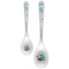 Zestaw łyżeczek do karmienia z kolekcji EXOTIC ANIMALS z wesołymi, kolorowymi nadrukami uatrakcyjni dziecku każdy posiłek. Łyżeczki wykonane został z melaminy, tworzywa odpornego na zarysowania. Posiadają zaokrąglony kształt, dzięki czemu nie podrażniają delikatnych dziąseł dziecka. Zestaw składa się z dwóch łyżeczek: małej i dużej. Przeznaczony jest dla dzieci powyżej 9. miesiąca życia.