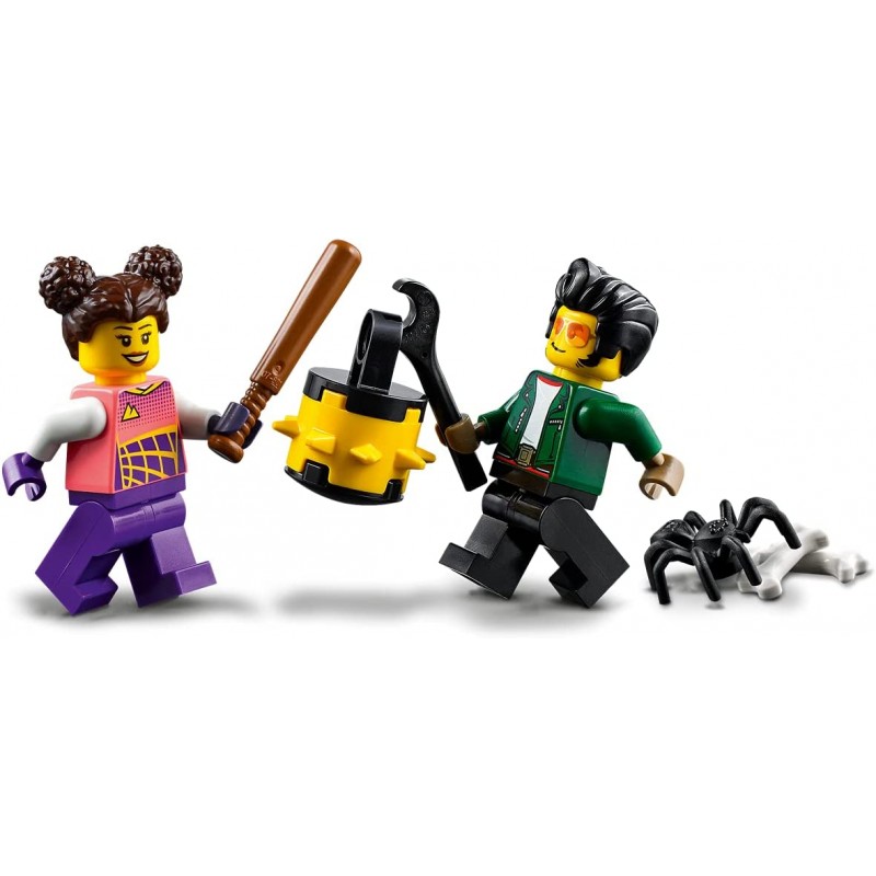 - Co jest w środku? Wszystkie elementy modułowego parku kaskaderskiego z dwiema rampami do skoków, przeszkodami, płomieniami, klatką pająka i motocyklem kaskaderskim napędzanym kołem zamachowym, a także mini figurka LEGO Treada Octane’a.
