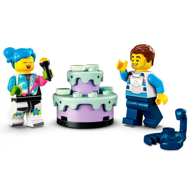 - W komplecie fajne akcesoria LEGO — minifigurki mają takie akcesoria, jak zabawkowy skorpion, puchar, śrubokręt i mikrofon