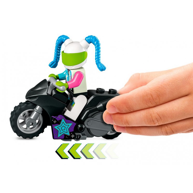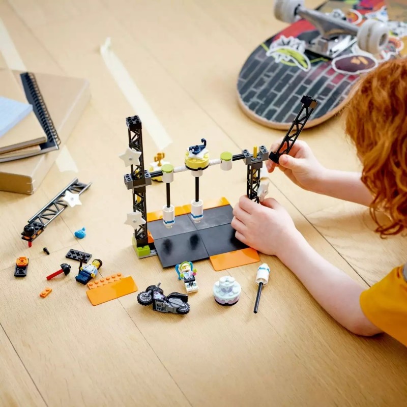 Dzieciom, które lubią współzawodnictwo, spodoba się zestaw LEGO City Wyzwanie kaskaderskie: przewracanie 60341 ze świecącymi w ciemności elementami. Dzieci mogą uruchomić motocykl napędzany kołem zamachowym, by trafić w kolumnę i wygrać nagrodę. Dwie popularne postacie z serialu telewizyjnego LEGO City sprawiają, że zabawa jest jeszcze wspanialsza, a dodatkowo zestaw można połączyć z innymi zabawkami z serii LEGO City Stuntz.