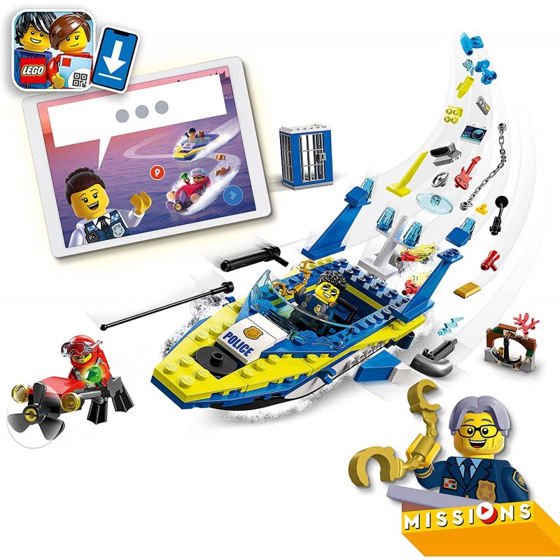 - Interaktywne przygody w cyfrowym świecie — zapoznaj dzieci z interaktywną zabawą LEGO® dzięki zestawowi LEGO® City Śledztwa wodnej policji (60355)