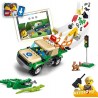 - Co jest w pudełku? — wszystkie elementy LEGO potrzebne do zbudowania furgonetki i wzięcia udziału w niewymagających instrukcji wyzwaniach. W komplecie są też trzy minifigurki oraz figurki małego krokodyla, pantery, sowy, żaby i zająca