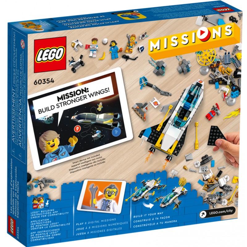 Zestaw LEGO City Wyprawy badawcze statkiem marsjańskim 60354 zawiera odlotowy badawczy statek kosmiczny i łazik, trzy mini figurki, figurkę robopsa oraz elementy LEGO przydatne podczas wykonywania ekscytujących zadań.