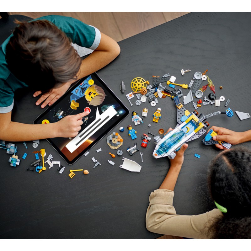 Do zabawy zestawem LEGO City Wyprawy badawcze statkiem marsjańskim wymagany jest smartfon lub tablet z zainstalowaną bezpłatną aplikacją Instrukcje budowania LEGO.