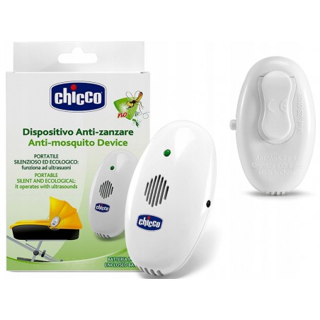 Ciche i ekologiczne urządzenie Chicco przeciw komarom działa poprzez ultradźwięki, które odstraszają komary nie wpływając przy tym negatywnie na ludzi. Mały rozmiar oraz praktyczny klips pozwalają na zaczepianie go do paska, ubrań lub do jakiegokolwiek innego miejsca. Działa do 100 godzin!