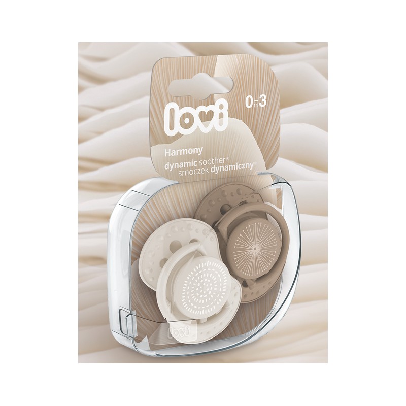 Dynamiczny smoczek uspokajający HARMONY od LOVI został stworzony we współpracy z neurologopedami. Ma unikalną budowę z niejednorodnego silikonu i symetryczny kształt inspirowany brodawką sutkową. Nie zaburza odruchu ssania i naturalnego rozwoju mowy i zgryzu.