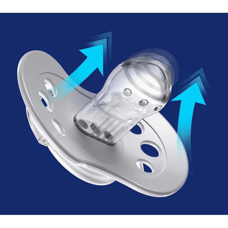 Profilowana tarczka- Profilowany kształt umożliwia dziecku swobodne oddychanie przez nos; bezpieczny surowiec, z którego jest wykonana, nie zawiera bisfenolu A.