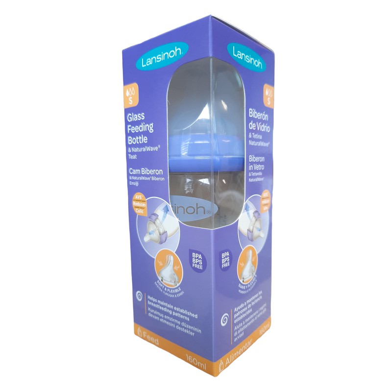 LANSINOH Szklana butelka do karmienia 160 ml + smoczek Natural/Wave.