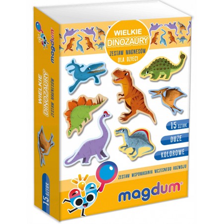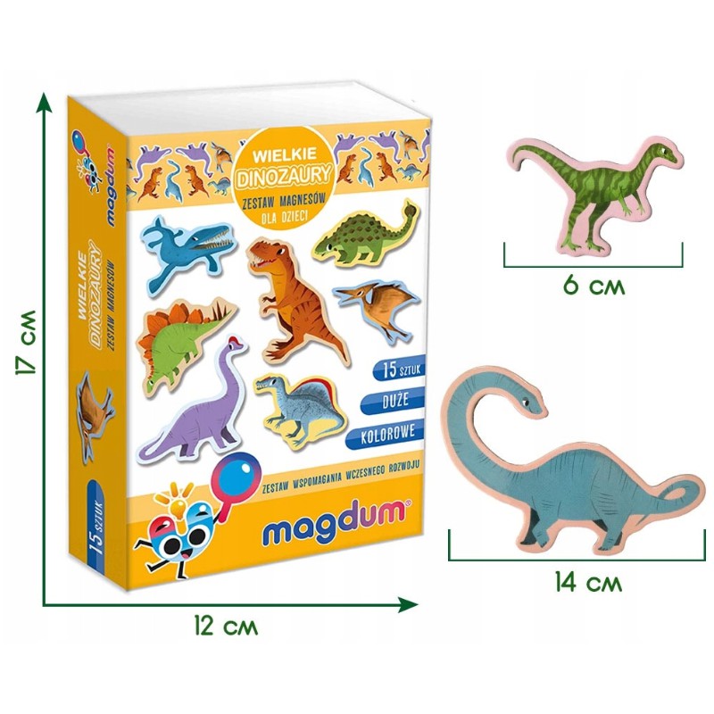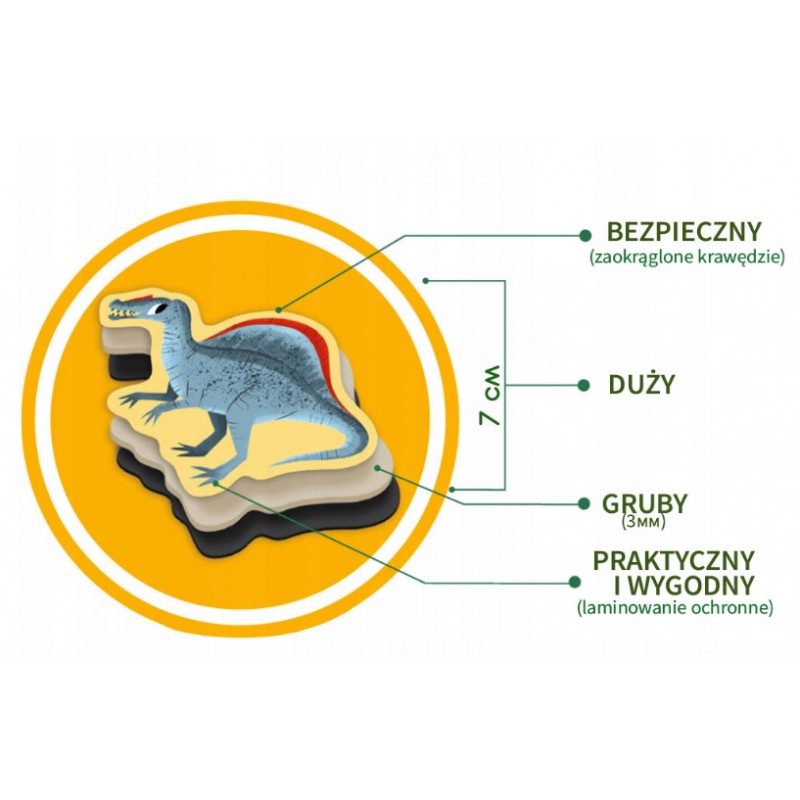 Zestaw magnesów dedykowany został najmłodszym dzieciom, które uwielbiają przeróżne układanki. Magnesy przedstawiają wielkie, prehistoryczne dinozaury.