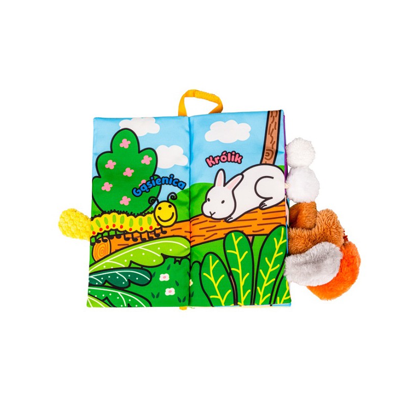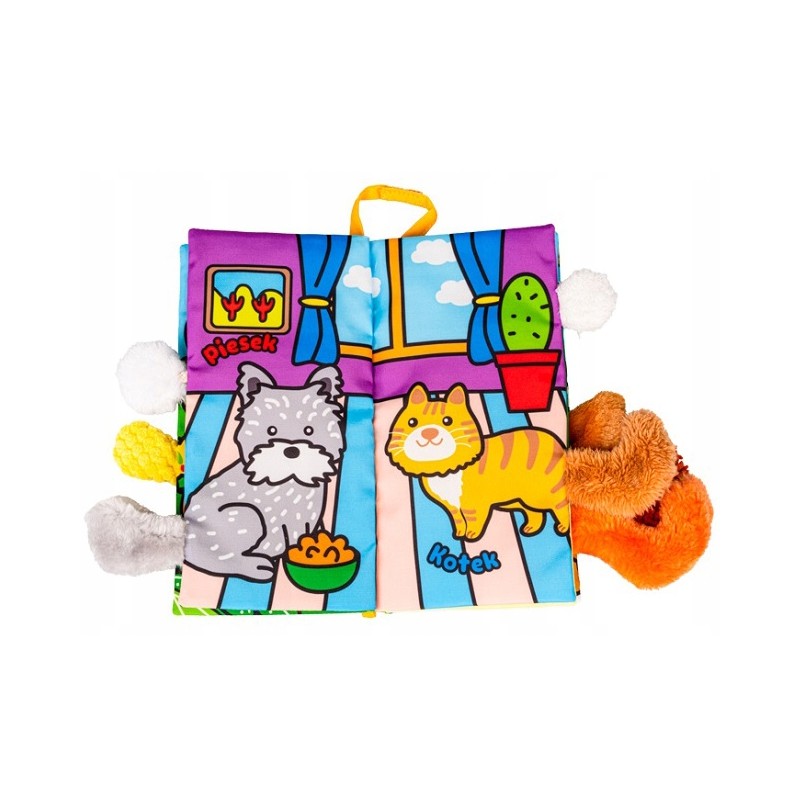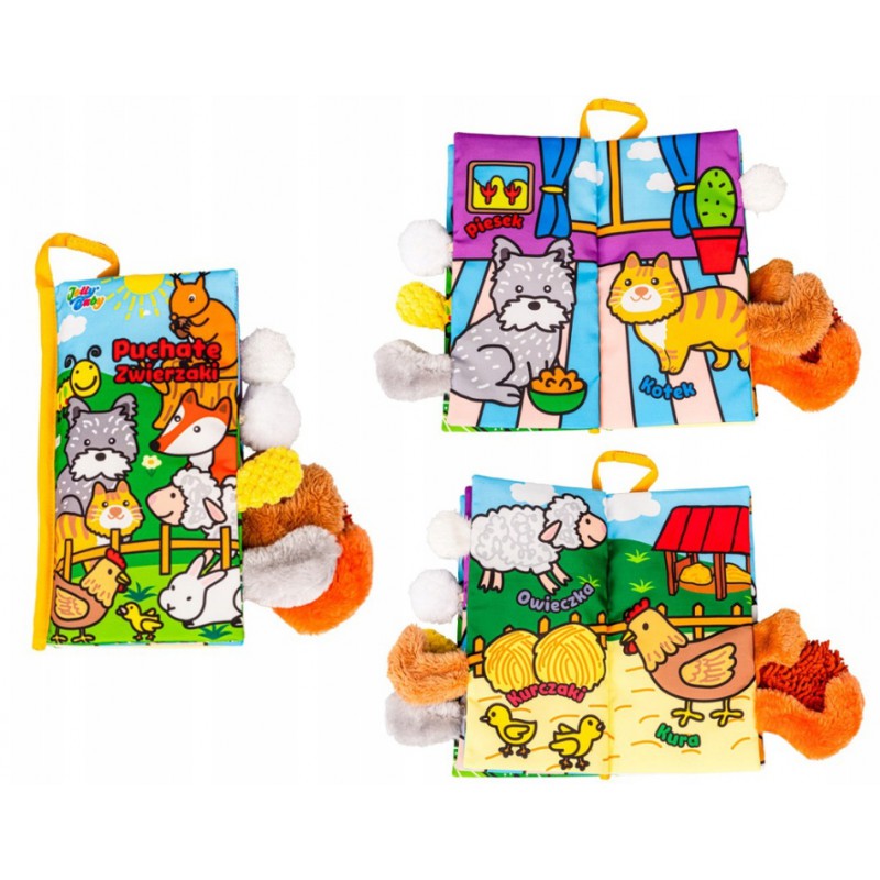 Miękka książeczka z puchatymi zwierzątkami zapewni najmłodszym wesołą zabawę. Na każdej ze stron znajdziemy innego zwierzaka wraz z jego polską nazwą.