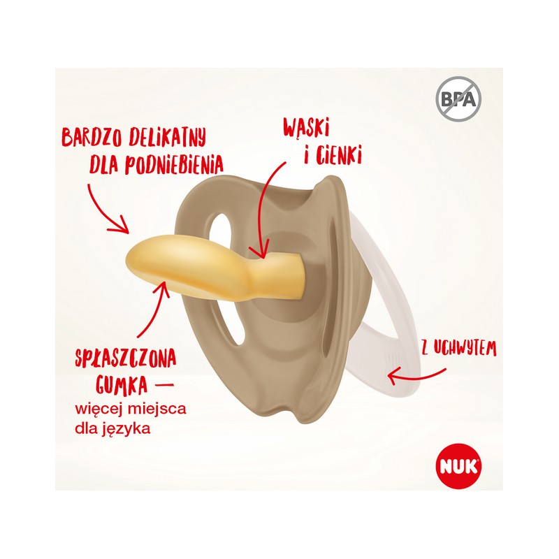 • wyjątkowo miękka górna powierzchnia smoczka dopasowuje się idealnie do podniebienia dziecka