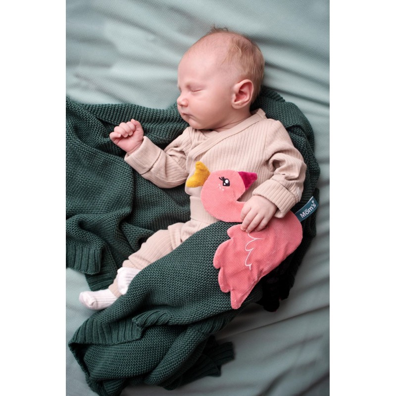 Różowy szeleścik – Łabędź Kamala uszyty jest z mięciutkich i różnorodnych pod względem struktury materiałów, bezpiecznych dla Twojego dziecka, które zaciekawią badawcze paluszki. Wypełniony jest szeleszczącą folią, której delikatny dźwięk przykuwa uwagę najmłodszych, ponieważ jest najbardziej zbliżony do dźwięków, które malec zna jeszcze z czasu pobytu w brzuszku mamy. Długie nóżki Łabędzia zachęcają malucha do chwytania. Wszystko to z pewnością zapewni dziecku wspaniałą zabawę na długi czas. Lekki szeleścik jest na tyle łatwy w chwytaniu, że może towarzyszyć dziecku już od pierwszych chwil, zarówno w łóżeczku, jak i na spacerze.
