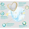 - Warstwa chłonna/powłoczka z wyściółką Heart Quilts, która jest wyjątkowo miękka dla skóry dziecka, a przy tym równomiernie odprowadza wilgoć.