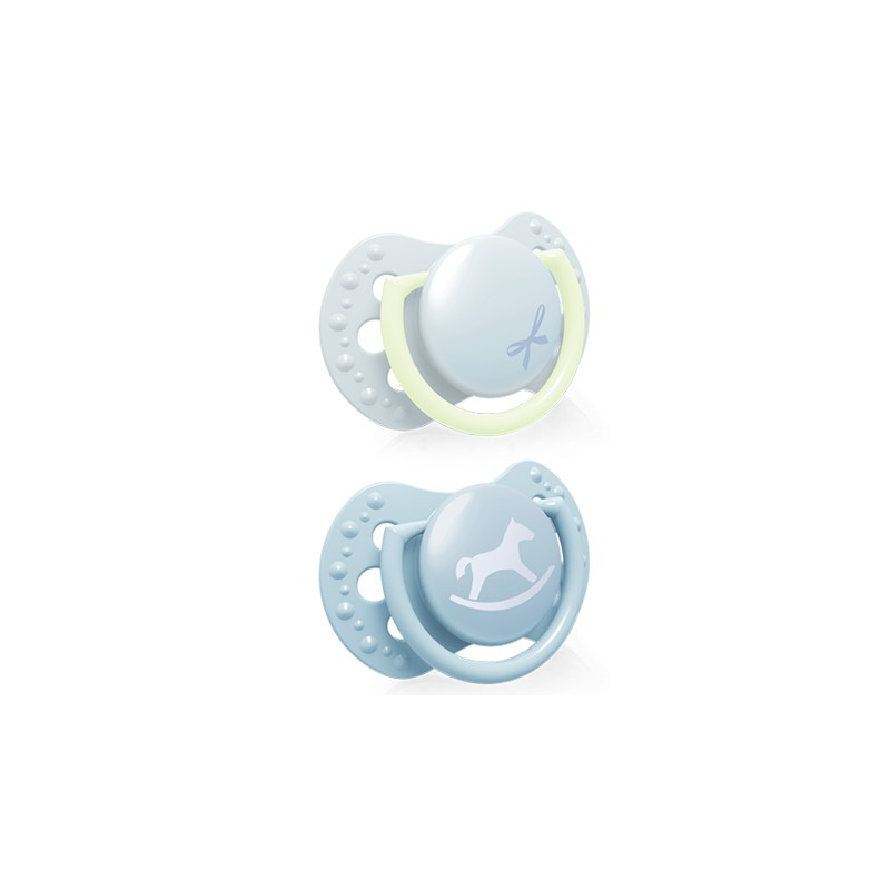 Kółeczko do chwytania ułatwia podawanie dziecku smoczka. W wersji z białym uchwytem świeci w ciemności, co pozwala na jego szybkie znalezienie.