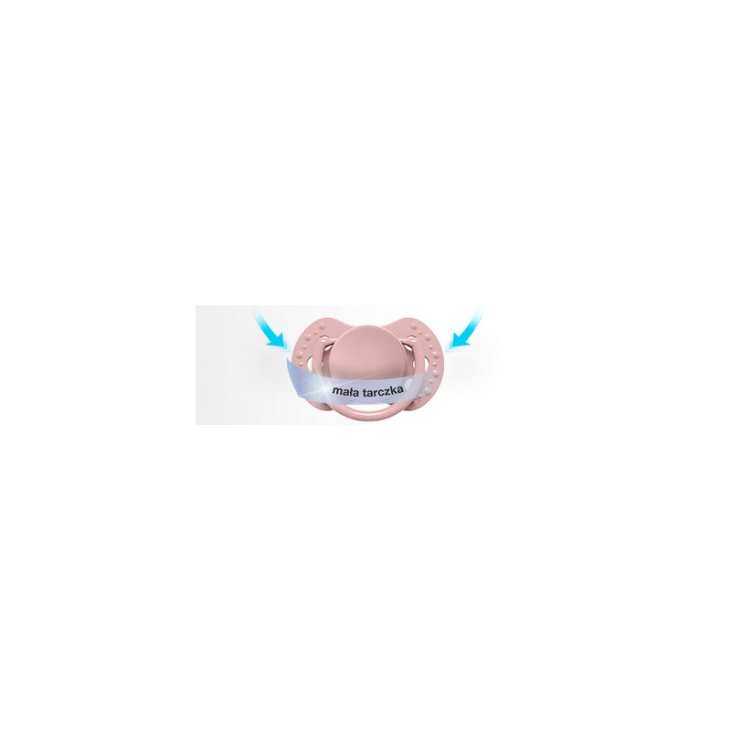 Mniejsza tarczka jest dopasowana do buzi noworodka. Profilowany kształt umożliwia dziecku swobodne oddychanie przez nos. Bezpieczny surowiec, z którego jest wykonana, nie zawiera bisfenolu A.
