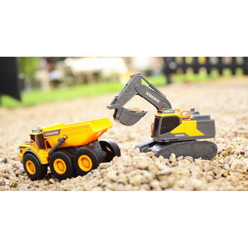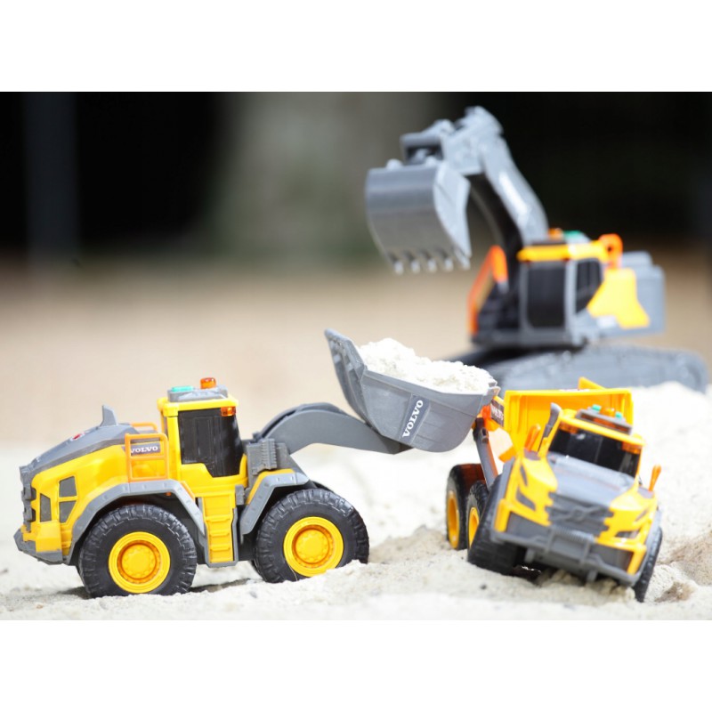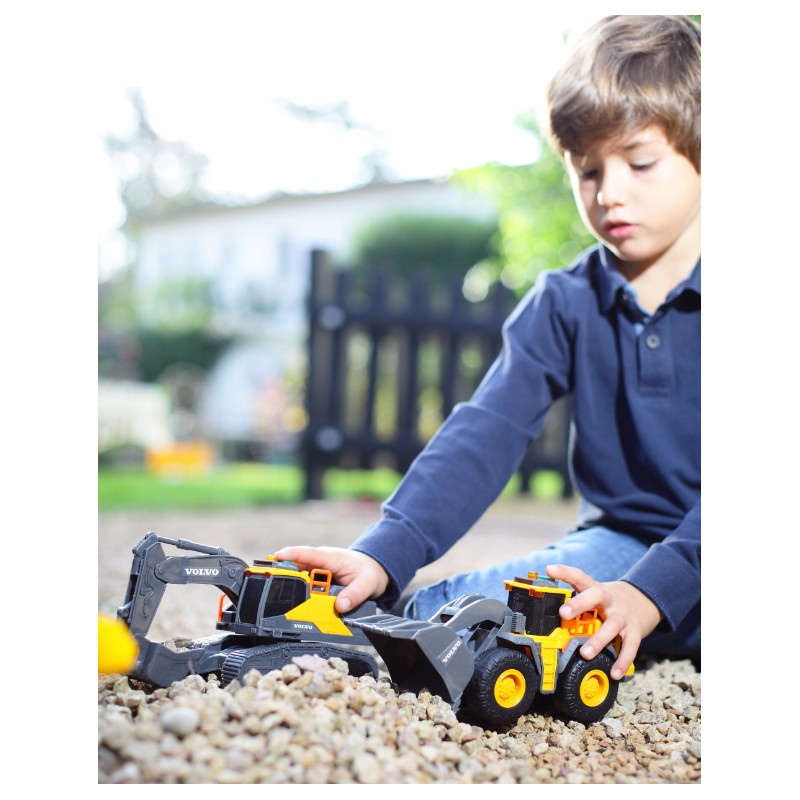 Dickie Construction to pojazdy budowlane: zabawki z siłą! Miasteczko rozbudowuje się w imponującym tempie, a do pomocy niewątpliwie przydadzą się odpowiednie pojazdy - koparka, spychacz lub wywrotka (sprzedawane oddzielnie). We współpracy z oryginalnym producentem maszyn budowlanych - Volvo - powstała wyjątkowa seria składająca się z replik pojazdów. Koparka jest wspaniałą propozycją dla małych wielbicieli pojazdów budowlanych. Pora rozpocząć budowę!